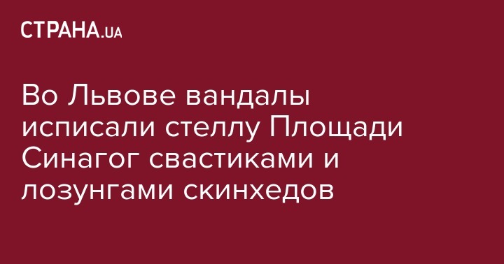 Во Львове вандалы исписали стеллу Площади Синагог свастиками и лозунгами скинхедов