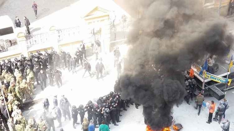 В Киеве под зданием администрации проходит акция протеста, снова горят шины, фото УНН