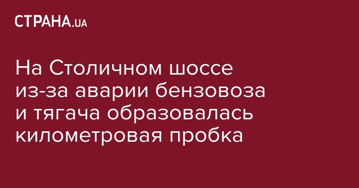 На Столичном шоссе образовалась большая пробка из-за столкновения бензовоза и тягача. Об этом сообщает портал dtp.kiev.ua на странице в Facebook.