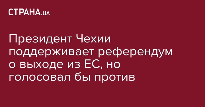 Президент Чехии Милош Земан сообщил о противоречивом отношении к выходу страны из ЕС. Он заявил, что поддерживает проведение референдума о выходе из ЕС, но если бы опрос произошел, он голосовал бы против. Об этом сообщает Aktualne.