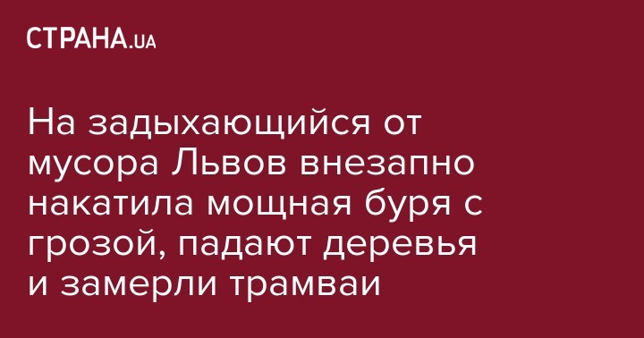 На задыхающийся от мусора Львов внезапно накатила мощная буря с грозой, падают деревья и замерли трамваи