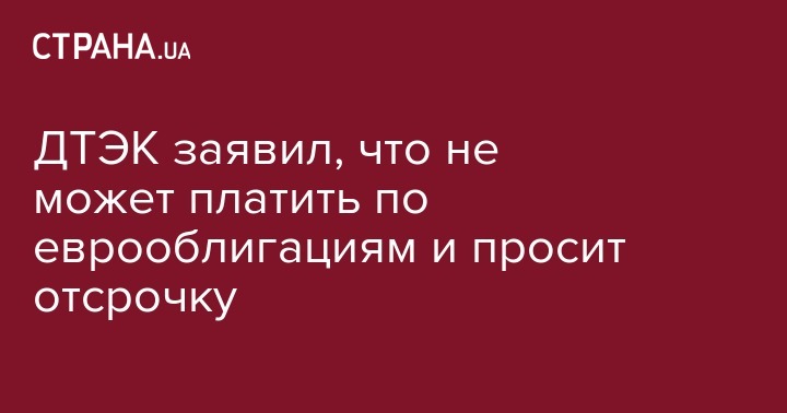 Крупнейший украинский частный энергохолдинг ДТЭК заявляет о невозможности в ближайшее время полностью оплачивать купоны по еврооблигациям на $910 млн с погашением в 2018 году и инициирует соглашение о временном моратории и освобождении от обязательств (standstill) сроком до 28 октября этого года, сообщает "Интерфакс-Украина".