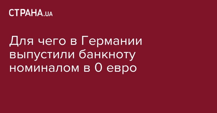 Для чего в Германии выпустили банкноту номиналом в 0 евро