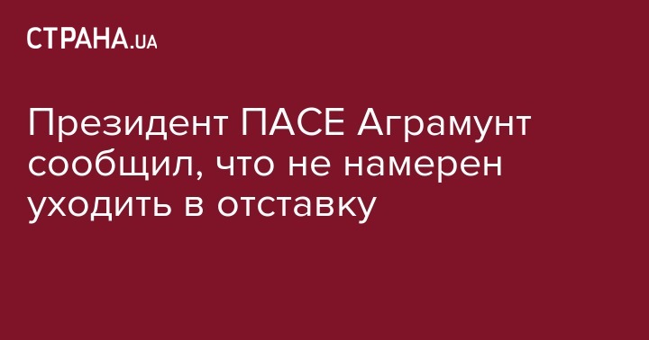 Как сообщала "Страна", президент Парламентской ассамблеи Совета Европы Педро Аграмунт не покинул должность президента ПАСЕ, несмотря на прежнюю договоренность с политическими группами ассамблеи.