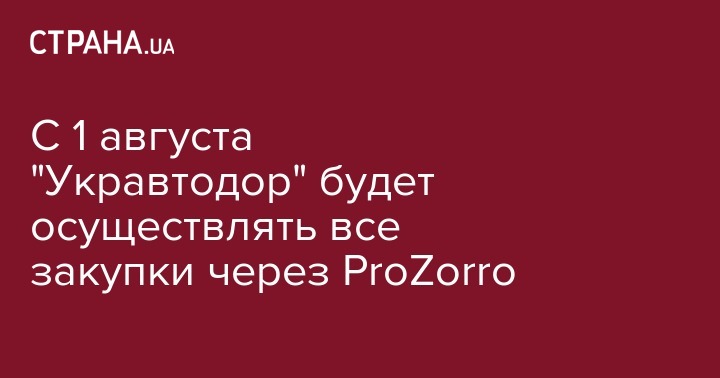 С 1 августа "Укравтодор" будет осуществлять все закупки исключительно через электронную систему ProZorro. Об этом сообщается на сайте Министерства инфраструктуры Украины.