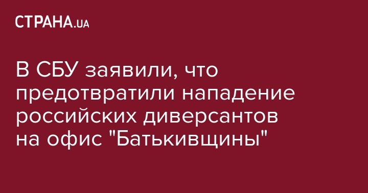 Служба безопасности Украины предотвратила нападение на офис ВО "Батькивщины" в Киеве, которое планировалось спецслужбами России. Об этом сообщает "Интерфакс-Украина".