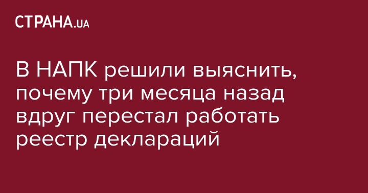 "НАПК инициировало проведение указанной экспертизы в связи с ситуацией, которая произошла с функционированием Реестра в марте 2017 года. Это позволит выяснить причины сбоев во время пиковых нагрузок, определить оптимальные пути модернизации Реестра, а также обеспечит в дальнейшем его надлежащее бесперебойное функционирование", - указано в опубликованном сообщении.