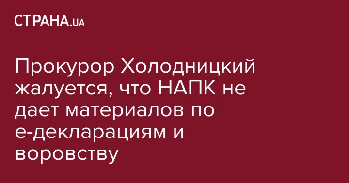 Прокурор Холодницкий жалуется, что НАПК не дает материалов по е-декларациям и воровству