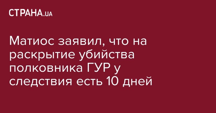 Матиос заявил, что на раскрытие убийства полковника ГУР у следствия есть 10 дней