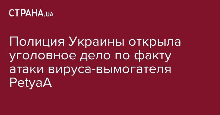 Полиция Украины открыла уголовное дело по факту атаки вируса-вымогателя PetyaA