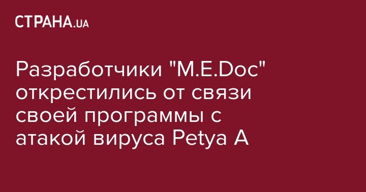 Разработчики учетно-бухгалтерской программы "M.E.Doc" опровергли ранее озвученные обвинения Киберполиции о том, что заражение компьютеров вирусом-вымогателем Petya A произошло из-за обновлений бухгалтерской программы M.E.doc.