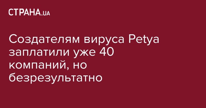 40 компаний перечислили 300 долларов в валюте биткойн интернет-вирусу Petya. Такие данные можно увидеть по биткойн-кошельку вымогателей, пишет Экономическая правда.