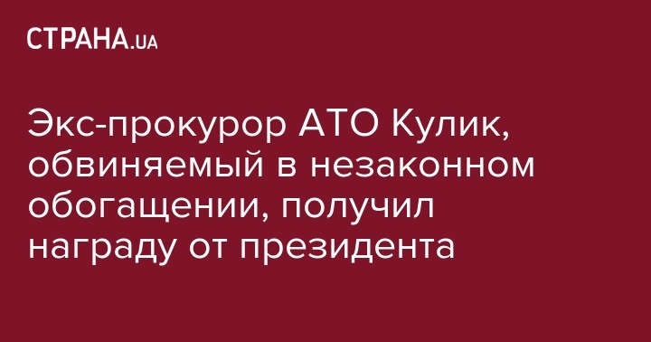Президент Петр Порошенко наградил заместителя начальника департамента международно-правового сотрудничества Генеральной прокуратуры и бывшего прокурора сил АТО Константина Кулика, обвиняемого в незаконном обогащении, орденом по случаю Дня Конституции Украины, говорится в указе главы государства от 28 июня.