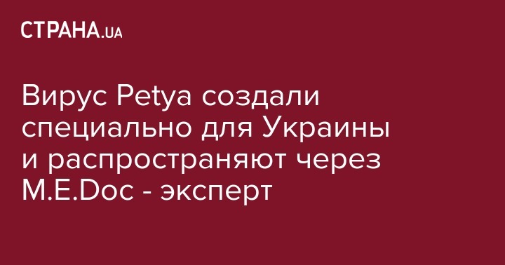 "Он (вирус Petya, - ред.) очень сильно отличается от предыдущих и похоже, что был написан специально для Украины. Предыдущие атаки были финансовые, это был вирус-вымогатель Wannacry, который распространялся по всему миру, шифровал файлы и требовал выкуп. Вирус Petya стирает данные, у него нет возможности возвращать людям данные, даже если они платят. Он распространялся через бухгалтерскую систему M.E.Doc, которая используется только в Украине и является обязательной к использованию для налоговой отчетности. Это очень технически приспособленный к Украине вирус и похоже, что это атака от государства", - отметил он.