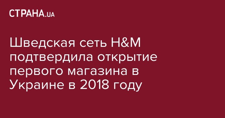 Крупнейшая европейская сеть по продаже одежды- шведская H&M (Hennes & Mauritz) подтвердила выход на украинский рынок в 2018 году. Информация об этом размещена в пресс-релизе компании, посвященном планам ее дальнейшего развития. "Новые рынки, запланированные на 2018 год, - Уругвай и Украина", - сказано в заявлении компании.