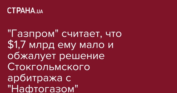 Как сообщала "Страна", стороны по разному оценили решение арбитража. Так, в "Газпроме" заявили, что Стокгольм постановил взыскать с "Нафтогаза" $1,7 млрд. Украина это отрицает.