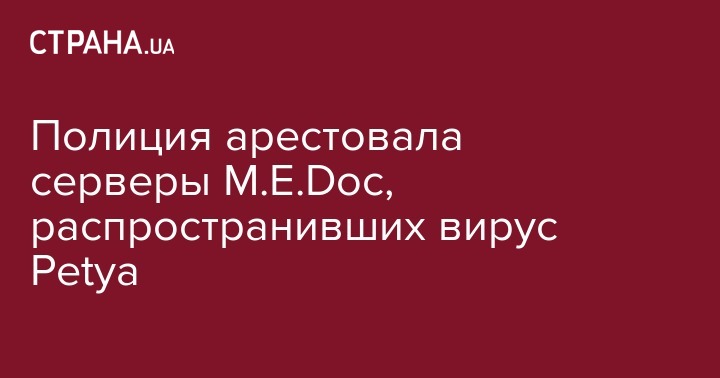 Украинская полиция во вторник, 4 июля, конфисковала серверы компании по разработке бухгалтерского программного обеспечения M.E.Doc по подозрению в распространении вредоносного вируса, который на прошлой неделе поразил компьютерные системы крупных компаний по всему миру.