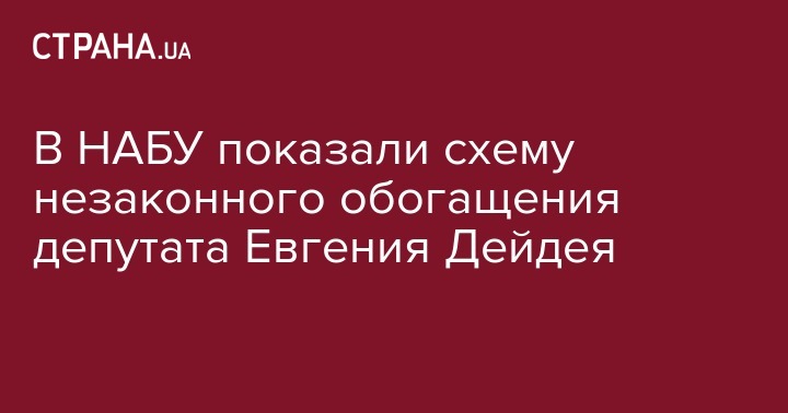 В Национальном антикоррупционном бюро Украины обнародовали схему незаконного обогащения нардепа Евгения Дейдея, а также аудиозаписи некоторых телефонных разговоров, которые подтверждают, что финансовое обязательство было отмечено нардепом в декларациях вероятно с целью легализации источников получения (происхождения) средств, передает пресс -служба НАБУ.