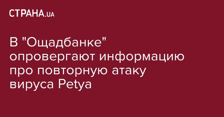 Государственный "Ощадбанк" выпустил официальное опровержение информации "Страны", что их серверы сегодня во второй раз подверглись кибератаке вирусом Petya. Об этом заявили в пресс-службе финансового учреждения.