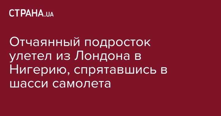 Юноша не старше 15 лет был обнаружен в субботу, 1 июля, в техническом отсеке шасси самолета Boeing 747 нигерийской авиакомпании Med-View Airline, приземлившегося в Лагосе после вылета из Лондона.