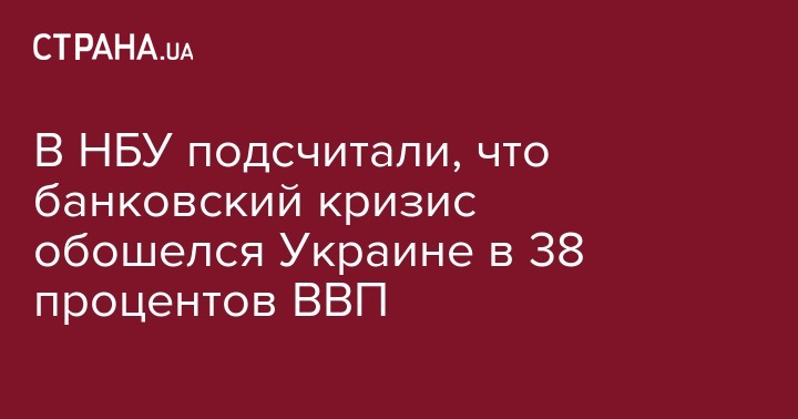 В Национальном банке подсчитали, что из-за банковского кризиса в 2014-2016 годах общие потери экономики оцениваются в 38% ВВП. Об этом пишет пресс-служба НБУ, ссылаясь на отчет регулятора.