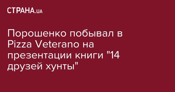 В среду, 5 июля, президент Украины побывал на презентации сборника рассказов военных, волонтеров, блогеров - "14 друзей хунты". Она проходила в киевской пиццерии Pizza Veterano. Об этом сообщается на официальной странице Петра Порошенко в Facebook.