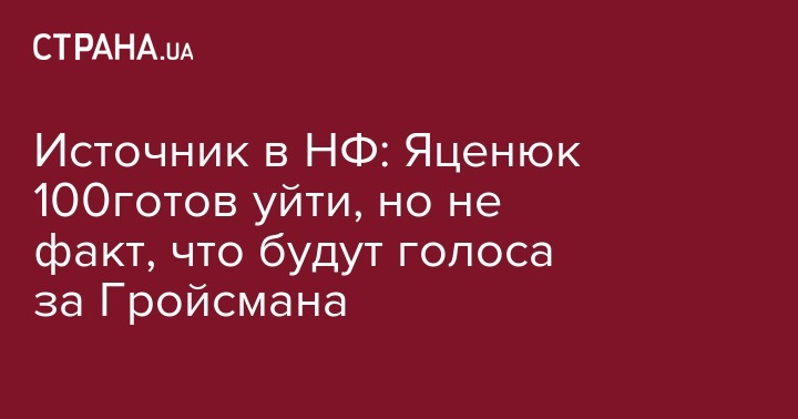 Источник в НФ: Яценюк 100% готов уйти, но не факт, что будут голоса за Гройсмана