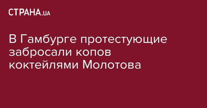 В немецком Гамбурге люди, протестующие против саммита "Большой двадцатки", начали применять коктейли Молотова. Об этом сообщает местная полиция в Twitter.