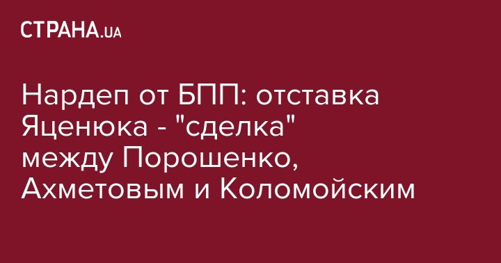 Отставка главы правительства Арсения Яценюка является результатом договоренности между президентом Петром Порошенко и олигархами Ринатом Ахметовым и Игорем Коломойским. Об этом 10 апреля в эфире Hromadske TБ заявил нардеп от БПП Сергей Лещенко.