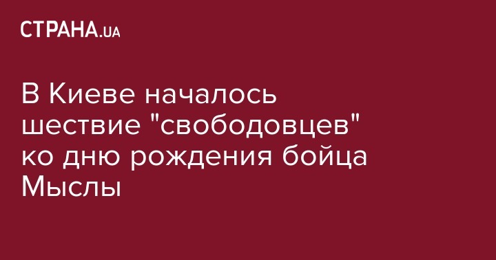 В Киеве рядом со станцией метро "Арсенал" началось шествие представителей ВО "Свобода" ко дню рождения погибшего в зоне АТО бойца Мирослава Мыслы. Об этом сообщает корреспондент "Страны".