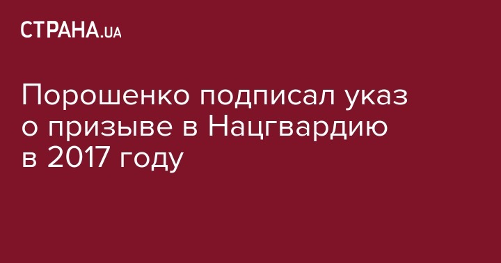 Президент Петр Порошенко подписал указ о призыве на срочную военную службу в ряды Национальной гвардии Украины в августе 2017 года.