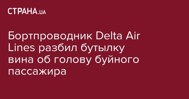 Бортпроводник Delta Air Lines, пытаясь успокоить буйного пассажира, разбил о его голову бутылку вина. Об этом сообщает ABC News.