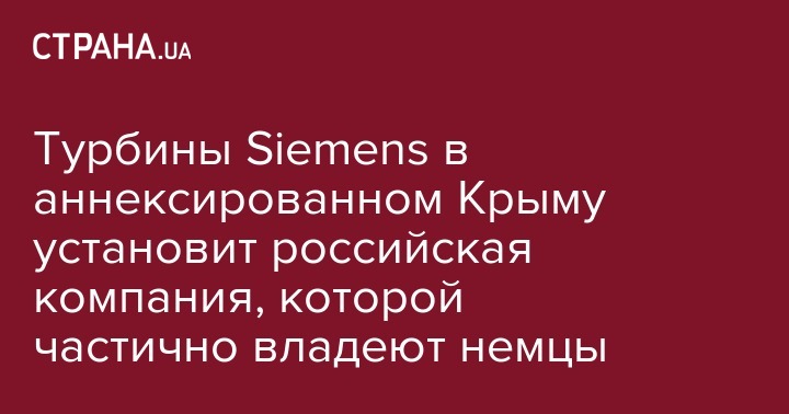Турбины Siemens в аннексированном Крыму установит российская компания, которой частично владеют немцы