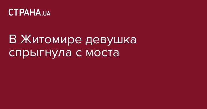 В Житомире девушка покончила жизнь самоубийством, прыгнув с подвесного моста. Об этом корреспонденту УНН сообщила пресс-офицер патрульной полиции города Светлана Зиляк.