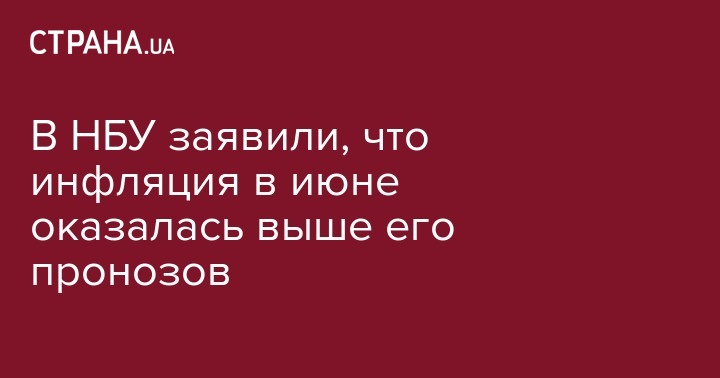 В Национальном банке Украины отмечают, что инфляция в июне была выше его прогнозов из-за роста цена на продукты, пишут "Украинские новости", ссылаясь на регулятора.