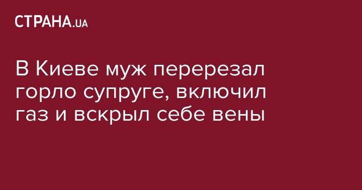 Вечером 10 июля в Киеве на проспекте Победы случилось жуткое чп - муж перерезал горло 28-летней жене, открыл газ в квартире и вскрыл себе вены. Об этом сообщает портал dtp.kiev.ua на странице в Facebook.