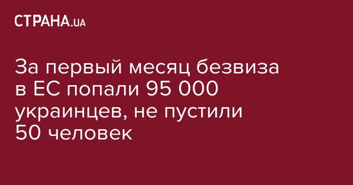 "Уже 95 461 гражданин Украины воспользовался правом беспрепятственного въезда в страны ЕС и всего 50 отказов. Большинство из них - из-за неподтверждения цели поездки. Поэтому готовьтесь тщательно и не бойтесь открывать для себя мир", - написал представитель Гспогранслужбы.