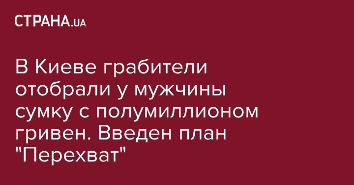 В Киеве грабители отобрали у мужчины сумку с полумиллионом гривен. Введен план "Перехват"