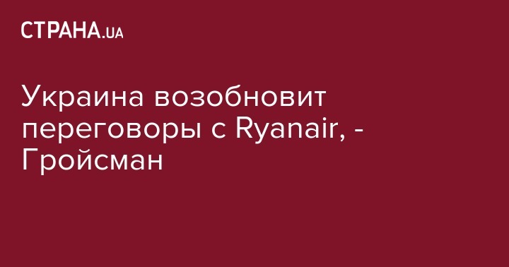 Украина возобновит переговоры с Ryanair, - Гройсман