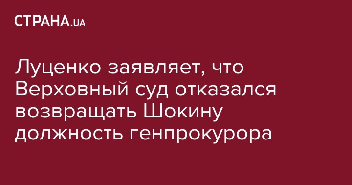 Луценко заявляет, что Верховный суд отказался возвращать Шокину должность генпрокурора