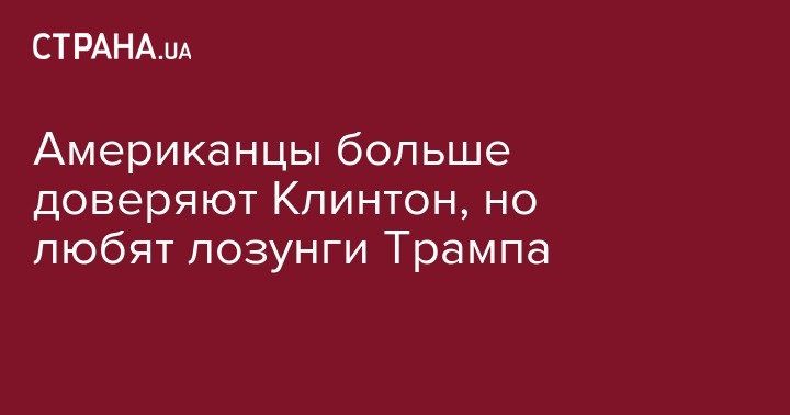На вопрос кто лучше подойдет для того, чтобы "сделать Америку великой" (ключевой лозунг кампании Трампа), большинство отдают предпочтение Клинтон (33%), а не Трампу (28%). Вместе с тем, в решении проблем экономики, что является одним из основных вопросов в кампании обоих кандидатов, опрошенные доверяют примерно поровну и Клинтон (38%) и Трампу (35%).