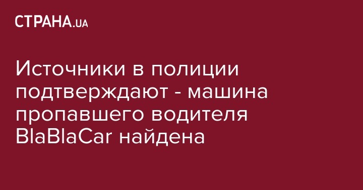 Несмотря на то, что в пресс-службе полиции Киевской области заявляют о том, что автомобиль Тараса Познякова все еще не найден, источники "Страны" подтверждают информацю о находке машины пропавшего водителя BlBlaCar.