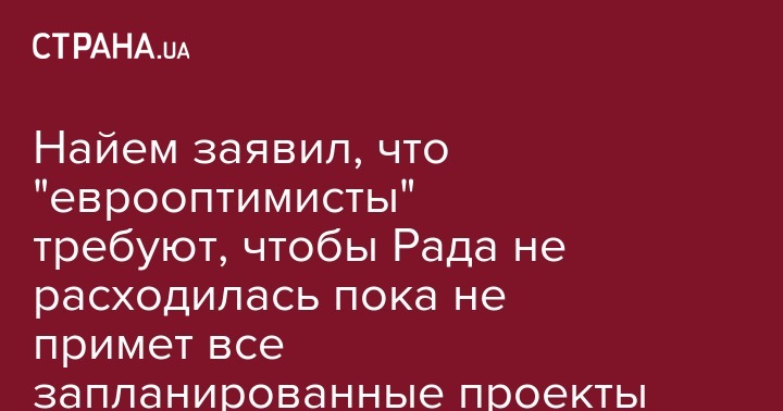 Парламентская группа "Еврооптимисты" заявила, что намерена заставить Верховную Раду работать сегодня до принятия всех вынесенных законопроектов, которые откладывались на протяжении всей сессии. Об этом на митинге под стенами Рады заявил нардеп Мустафа Найем (БПП).