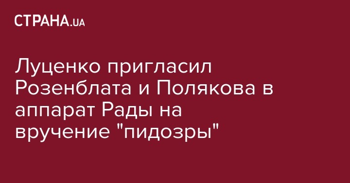 Ранее "Страна" сообщала, что Розенблат и Поляков не явились в Генпрокуратуру за своими "пидозрами". Также Луценко заявил, что в четверг лично вручит подозрения Розенблату и Полякову