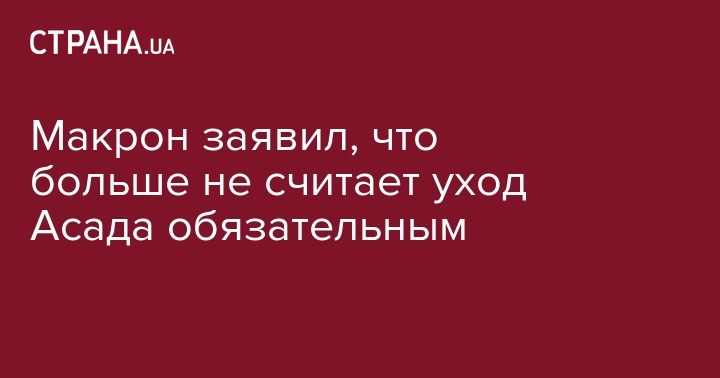 Глава Франции Эммануэль Макрон заявил, что Париж больше не считает необходимым условием уход Башара Асада с поста президента Сирии. Об этом сообщается на сайте Белого дома.