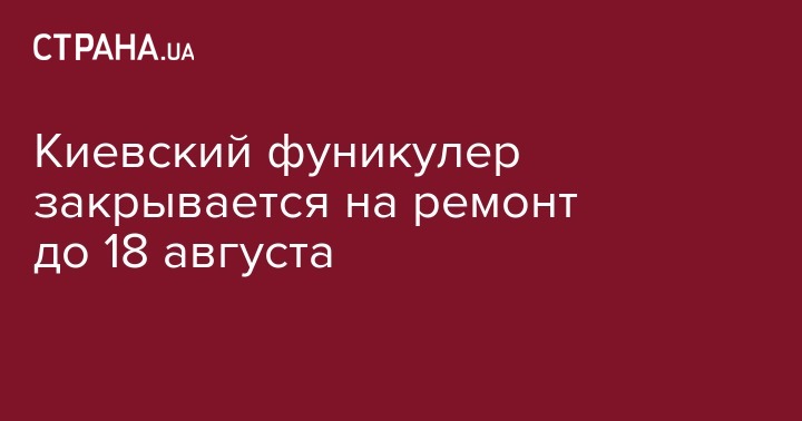 Киевский фуникулер 17 июля в 22.00 закрывается на месяц для выполнения ежегодных регламентных работ и капитального ремонта узлов фуникулера. Об этом сообщили в пресс-службе КП "Киевпастранс".
