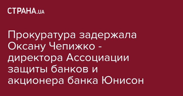 Сотрудники генеральной прокуратуры Украины задержали Оксану Чепижко, исполнительного директора Ассоциации защиты банков. Об этом сообщает Ассоциация защиты банков на своей странице в соцсети Facebook.