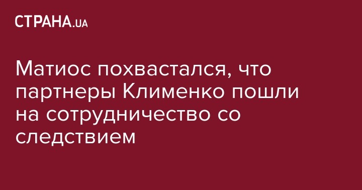 Партнеры экс-министра доходов и сборов Александра Клименко пошли на сделку со следствием. Об этом сообщает главный военный прокурор Анатолий Матиос на своей странице в Facebook.