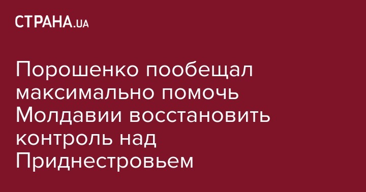 Порошенко пообещал максимально помочь Молдавии восстановить контроль над Приднестровьем