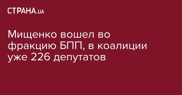 Мищенко вошел во фракцию БПП, в коалиции уже 226 депутатов